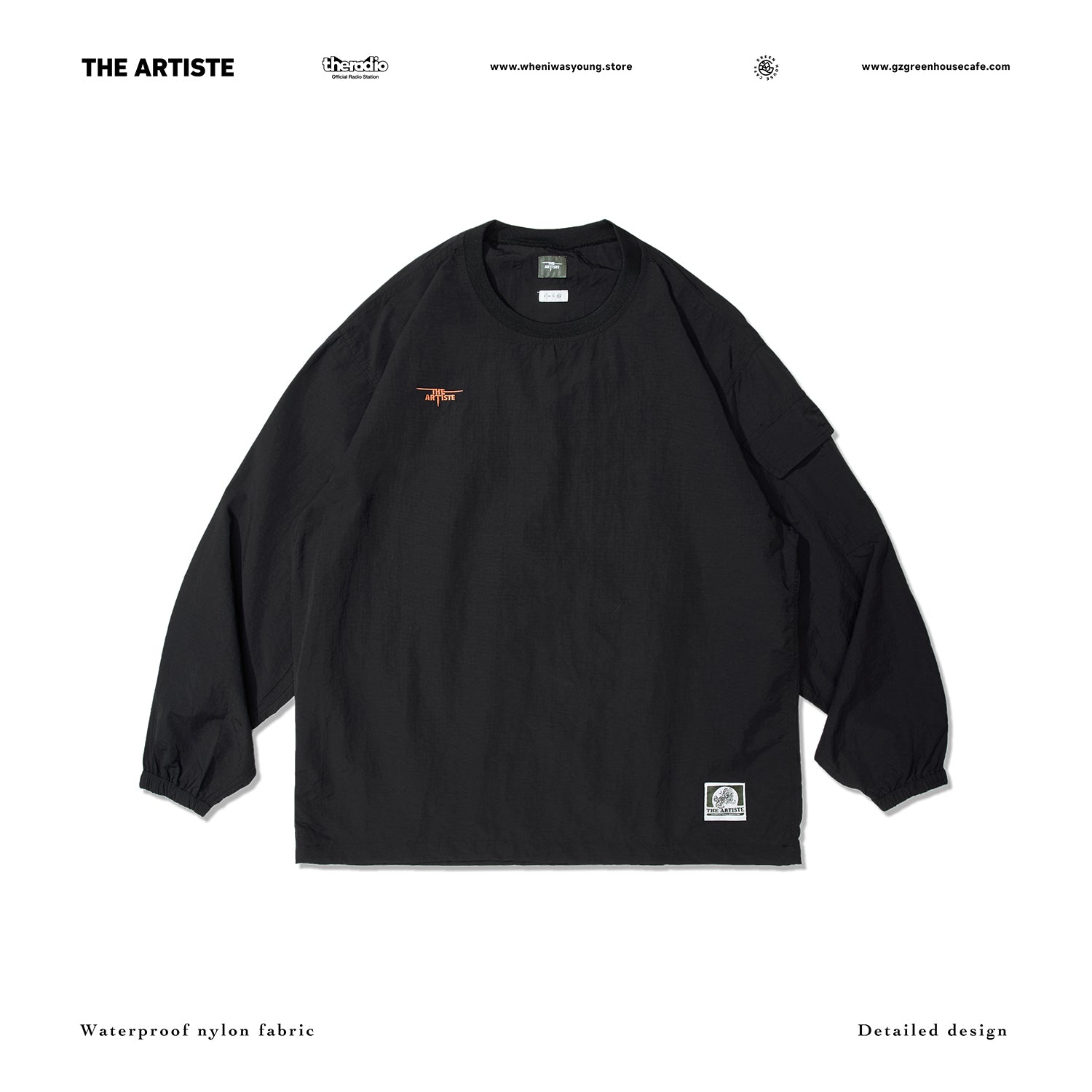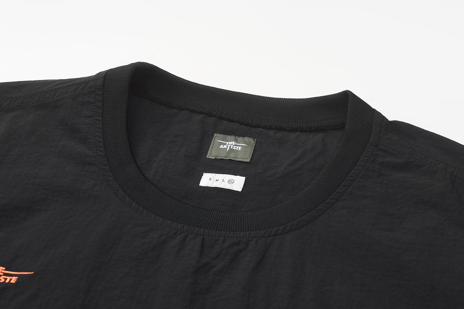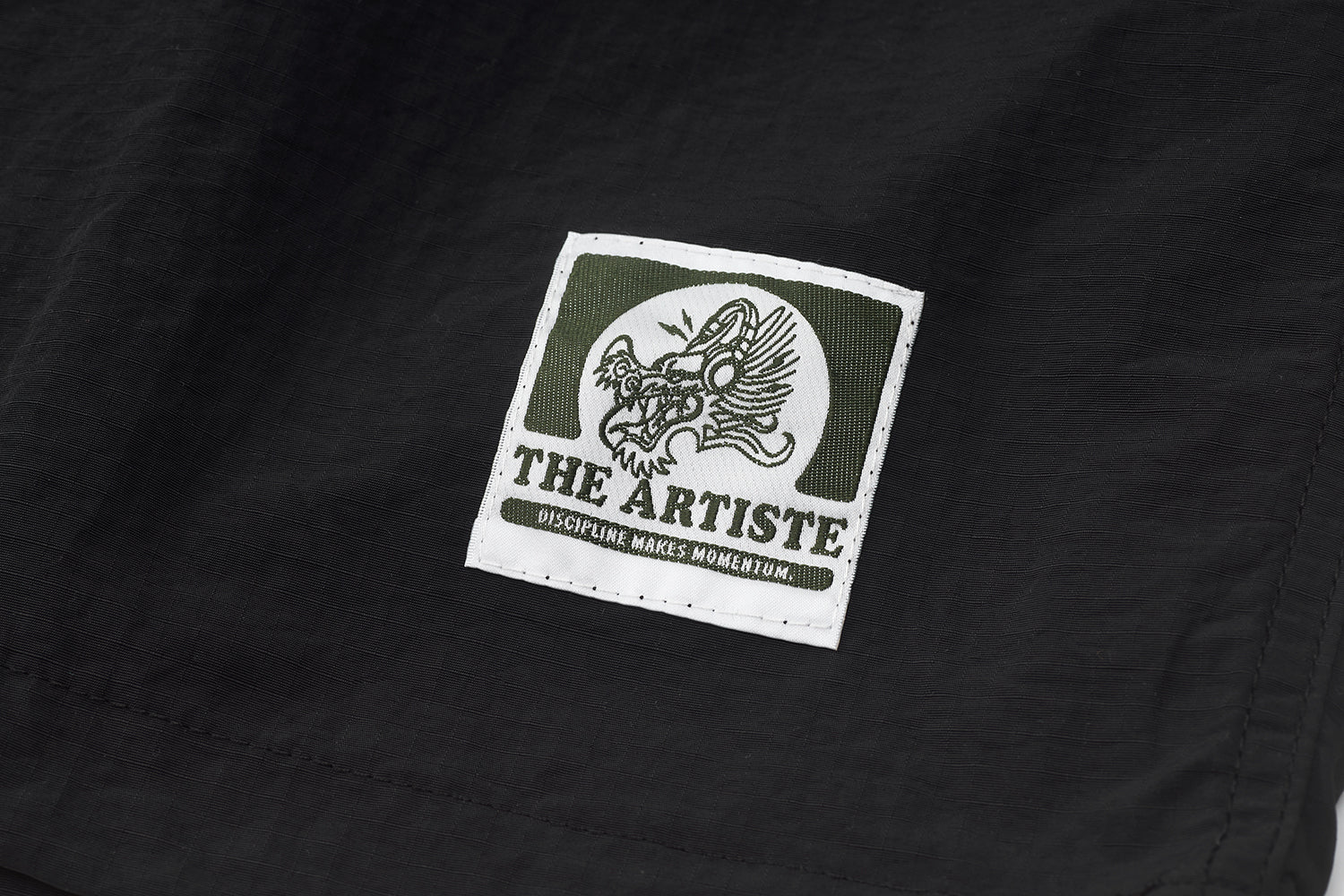 A small orange embroidered THE ARTISTE mark sits at the chest,